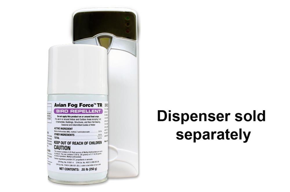 Avian Fog Force™ TR Bird Repellent is an EPA registered bird repellent that is effective against nuisance birds and is suitable for use around humans, pets and terrestrial animals. Designed to be used with a metered Timed Release Dispenser. Use Indoors or Outdoors.