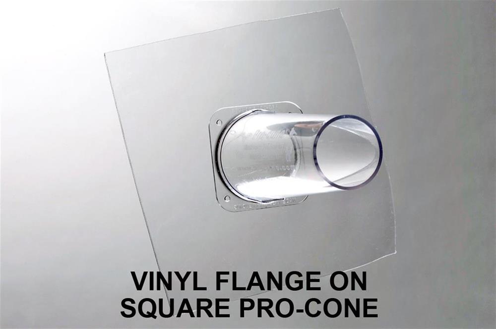 Vinyl Base Flange: Vinyl flange extends coverage of the cones out to 6" square.