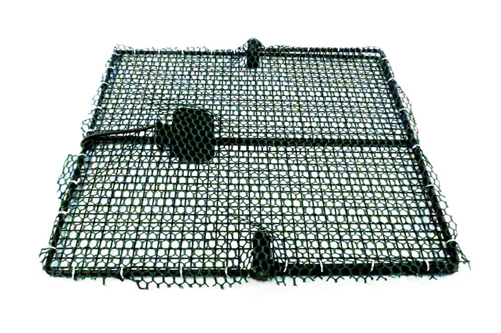 17" x 17" x 2" Snap Trap for birds. Designed for the live capture of unwanted medium to large pest birds. Powder coated frame and wire mesh floor with weather resistant nylon netting 1" hex shaped mesh to hold birds securely.