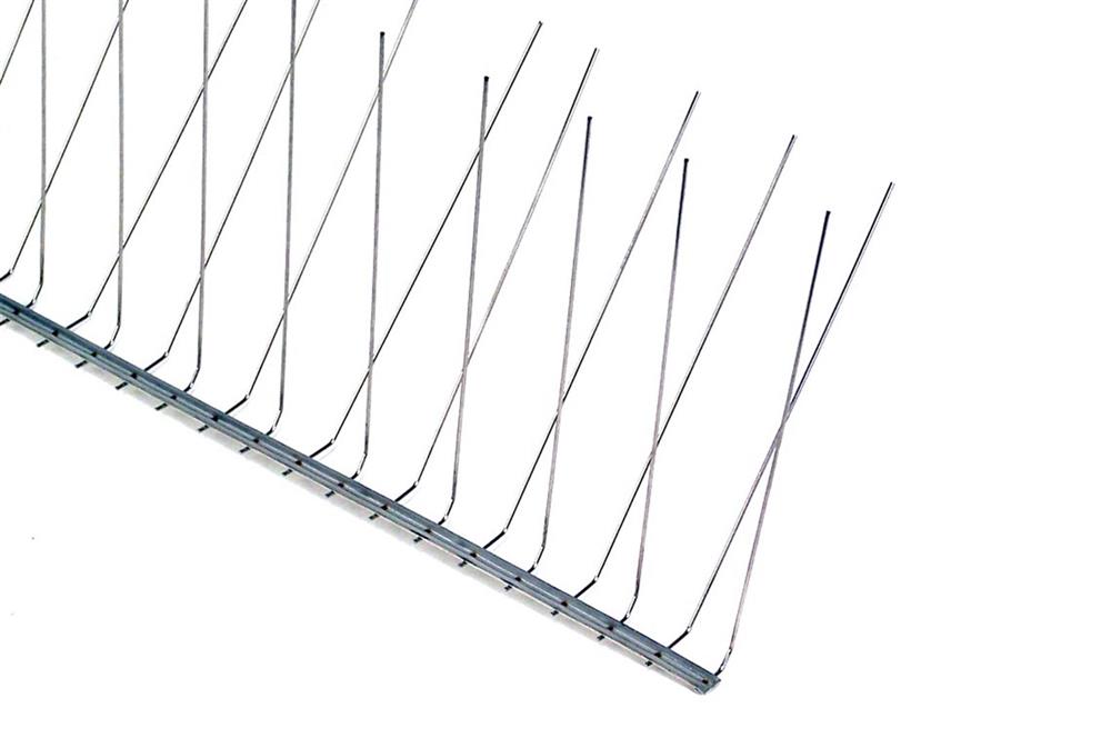 B. The E-Spike All Stainless-Steel Economy Bird Spikes are a physical and passive barrier. They rely on the system of pointed stainless steel wires to deter pest birds from getting to the surfaces on which they are installed. Periodic inspections are recommended to keep the bird spike strips in good condition.