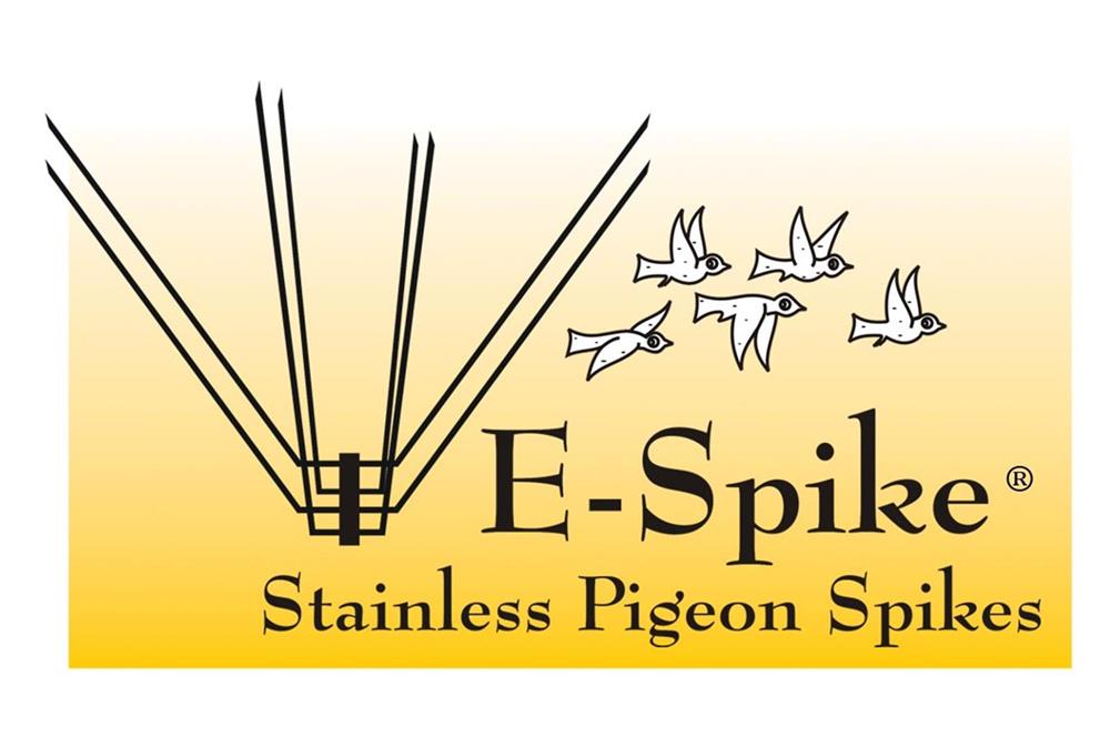 E-Spike All Stainless-Steel Economy Bird Spikes in the USA with materials processed in the USA. These flexible bird spike strips deter pigeons and seagulls on all types of architectural surfaces. Not intended for larger or smaller bird species or for severe infestations of any bird. Effective installations help eliminate the high costs of cleaning and structural maintenance caused by pest birds and their unsanitary habits, while also protecting people from the health risks associated with bird waste.
