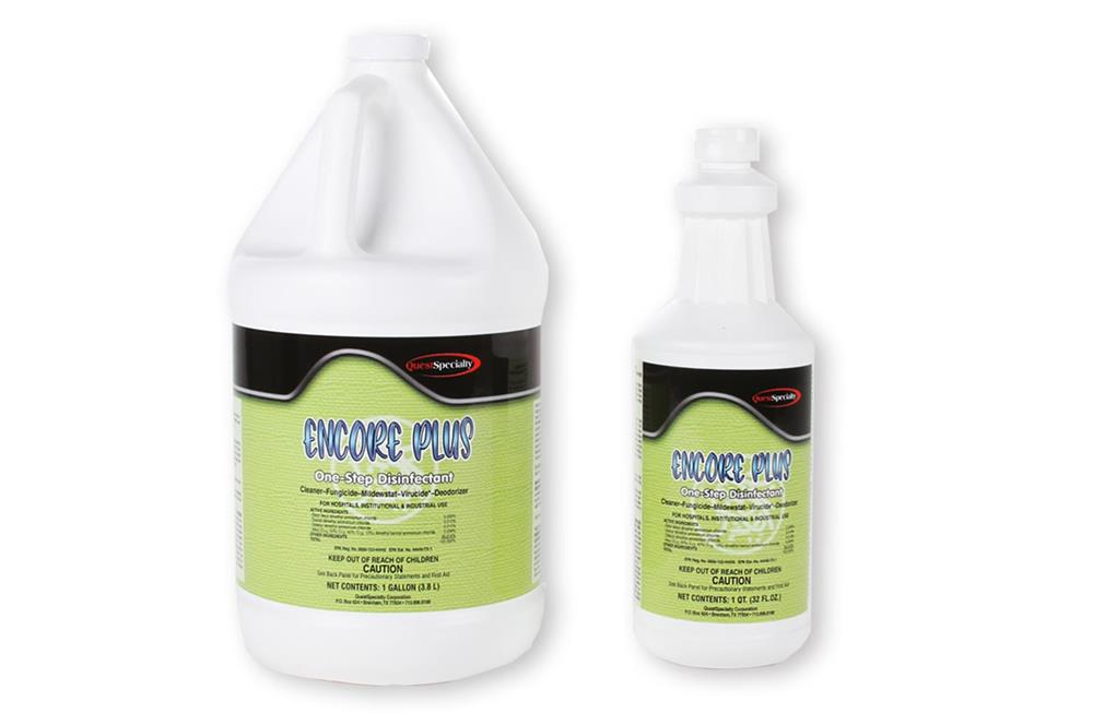 Encore Plus cleans, disinfects and deodorizes in one labor saving step. Ready to use (no mixing) and has a fresh floral fragrance. Available in Gallons or Quarts. Use this product in hotels,