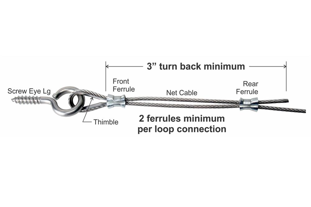 Connection Hardware - Hardware used to connect the cable to the corner hardware, turnbuckles and the netting mesh.