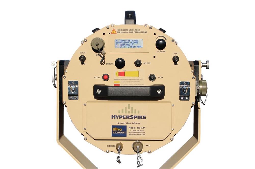 A self-contained, lightweight, portable and powerful acoustic hailing device. Weighing only 37 pounds, the HyperSpike 14 packs a peak acoustic output of 151 dB for a communication range of 1,500 meters (1,641 yards, 4,921 feet).