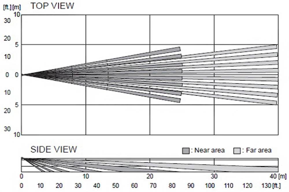 Tri-tech sensor technology improves accuracy, while reducing false positive activation. Sensor operates under both daylight and nighttime conditions. Reference the distance and angle graphic for specific coverage area.
