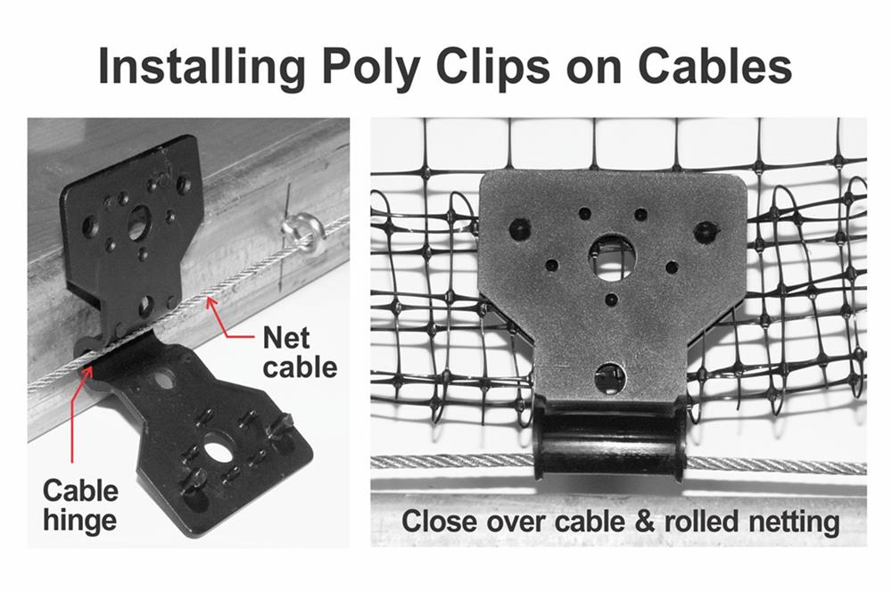 Poly Clips provide a low cost, easy to install method for perimeter fastening on bird netting or poly based fence.