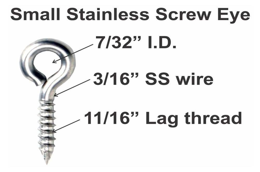 Small stainless steel screw eyes are used as Cable Guides on wood or heavy gauge sheet metal surfaces.