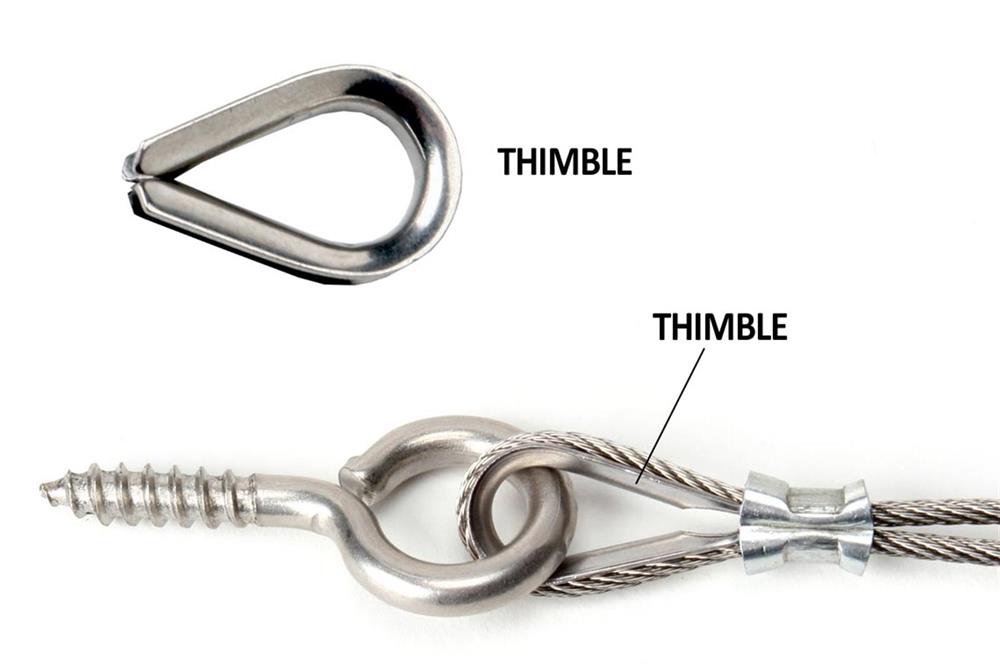 • Match the Thimble base material to the cable. Use stainless steel thimbles with stainless steel cables. Use the zinc plated galvanized steel thimbles with galvanized cables.